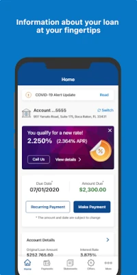 Freedom Mortgage offers you the option to make a one-time payment or set up recurring payments through our mobile app. Simply download the app and login to your account or create a new account if you haven’t already set up your online access. Then, select One Time Payment from Account Details.